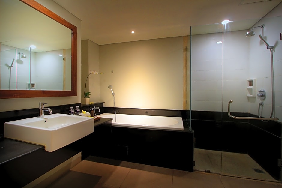 This air-conditioned room is fitted with a flat-screen satellite TV, safety deposit box and mini-bar. The private bathroom has a shower, bathtub and free toiletries.